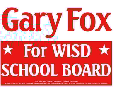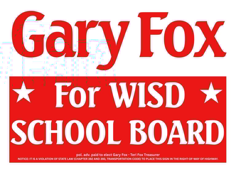 Elect Gary Fox for Waxahachie ISD School Board, place 1.